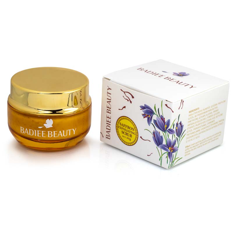 Badiee Beauty’s Saffron Exfoliating Face Scrub is your key to vibrant and rejuvenated skin. This exfoliating masterpiece is enriched with the golden essence of saffron, known for its brightening and revitalizing properties. As you gently massage the scrub onto your skin, it delicately removes dead cells, unclogs pores, and stimulates blood circulation.